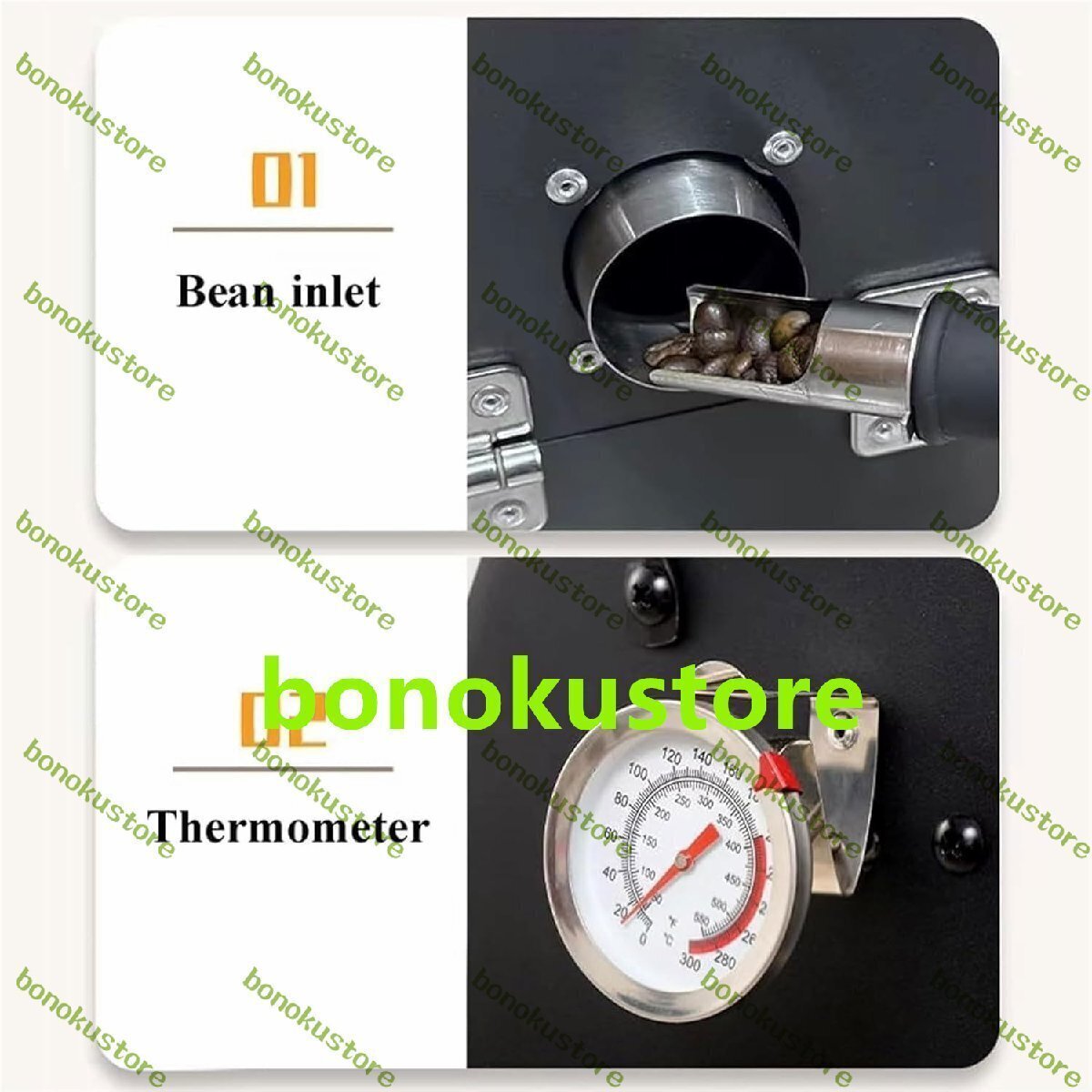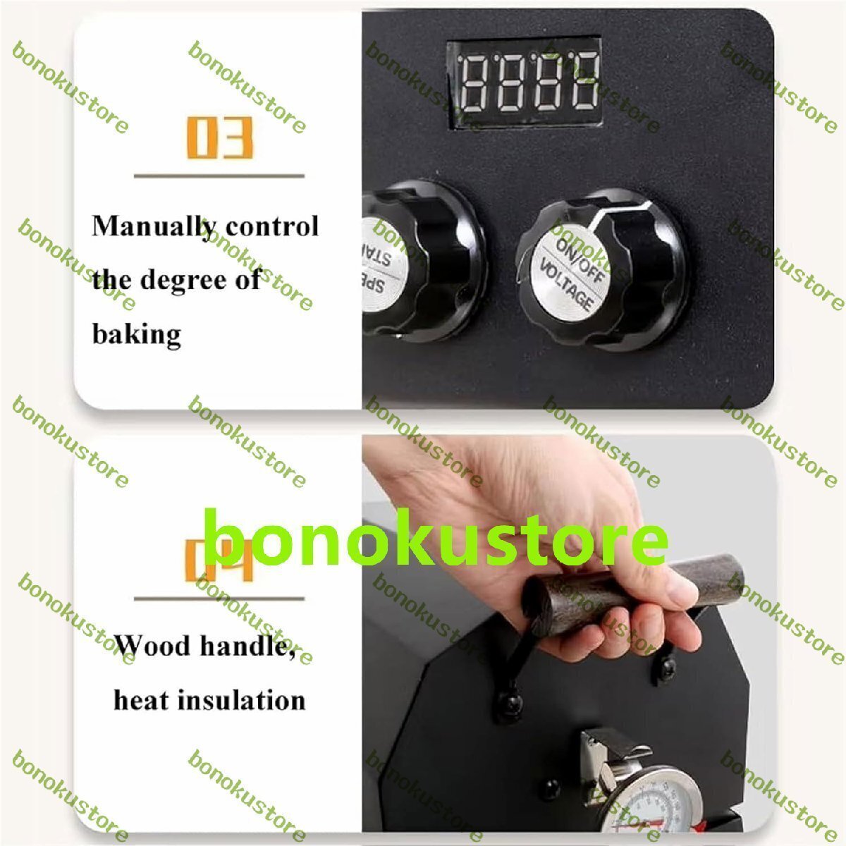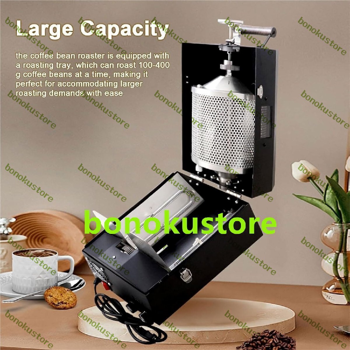 デスクトップロータリーコーヒー豆ロースター、400g商用電気ステンレス鋼焙煎機、ステンレス鋼漏斗とふるいバスケット付き、レストラン、バー、カフェ、オフィス、ホテル用