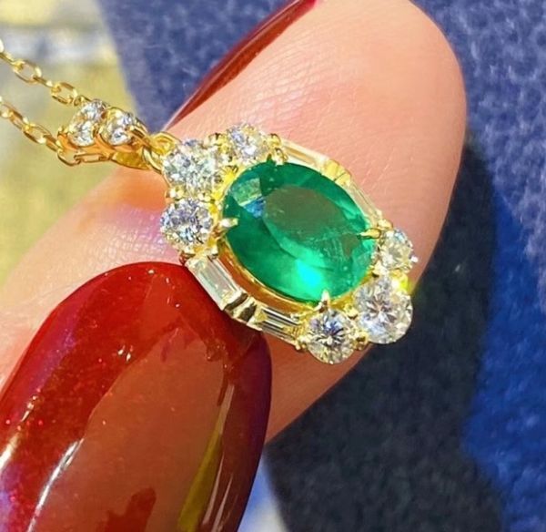 925スターリングシルバー エメラルド ネックレス  レディース   オリジナルペンダントチェーン