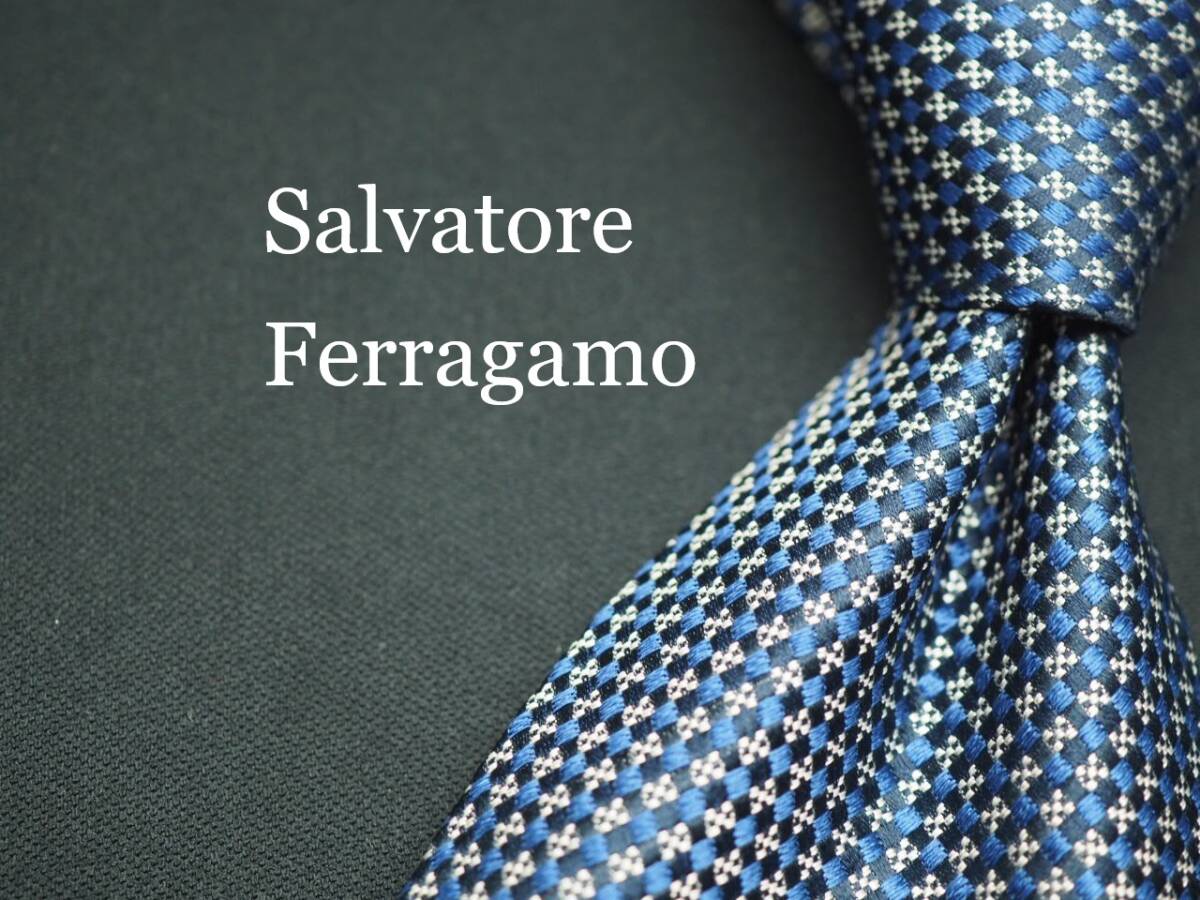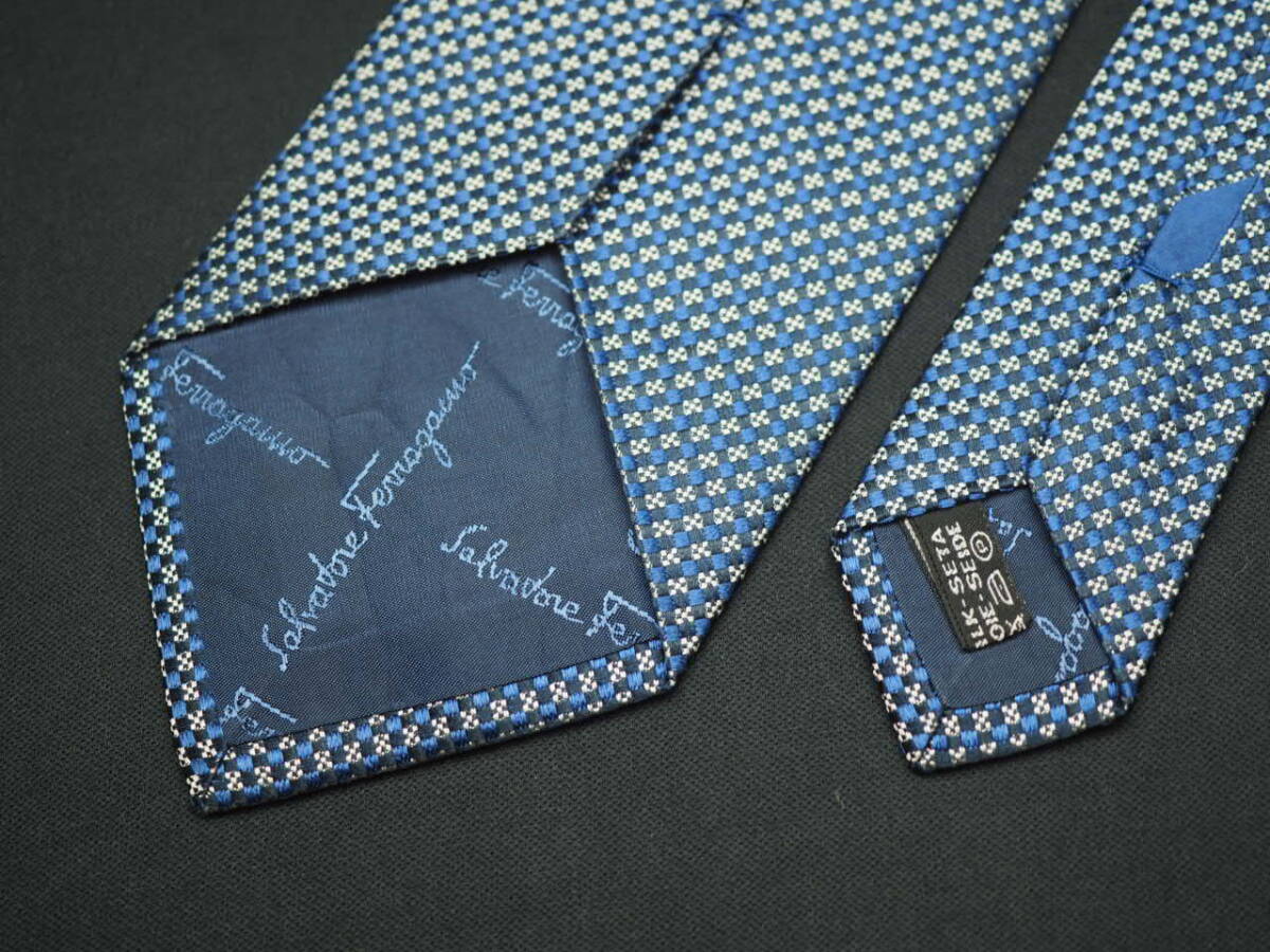 美品【Salvatore Ferragamo サルヴァトーレ フェラガモ】 F2643 シルバー ブルー系 SILK ブランド ネクタイ 古着 良品 転売 仕入
