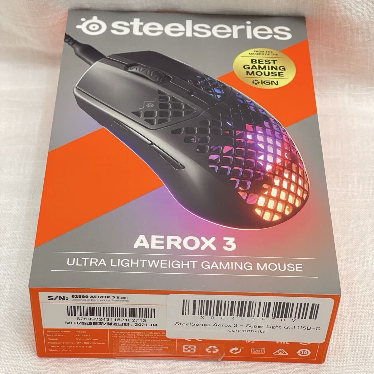 ゲーミングマウス 有線 steelseries 超軽量 Aerox 3 マウス USB ULTRA LIGHTWEIGHT GAMING MOUSE 62599 Black 2個セット