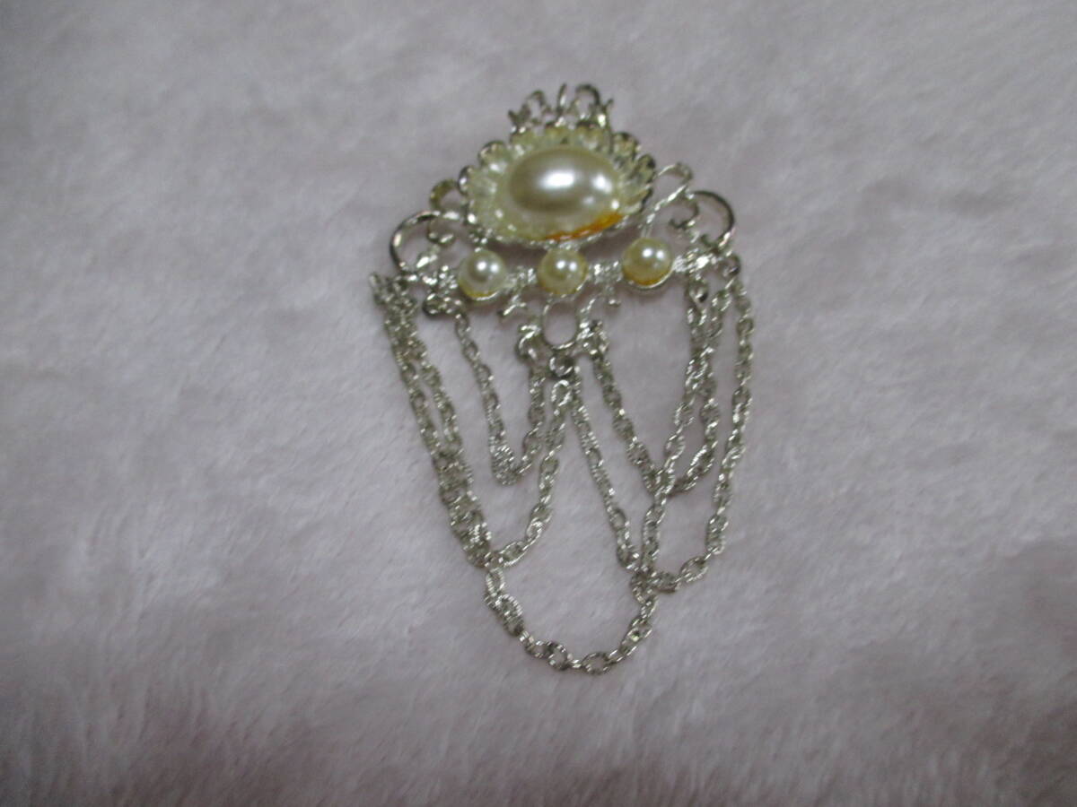 即決!未使用★マベ風石とパール風のブローチ★