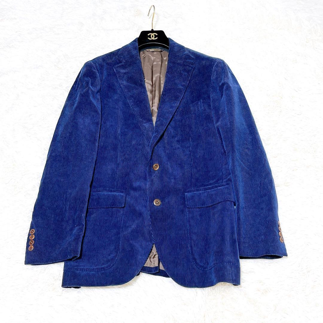Paul Stuart ポールスチュアート シングル テーラードジャケット コーデュロイ ネイビー 大きいサイズ Lサイズ 2B 開きみせ 折り返しボタン