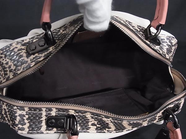 1円 ■新品同様■ COACH コーチ 69622 レーン サッチェル レザー×パイソン 2WAY ハンドバッグ ショルダー 斜め掛け アイボリー系 FR4716