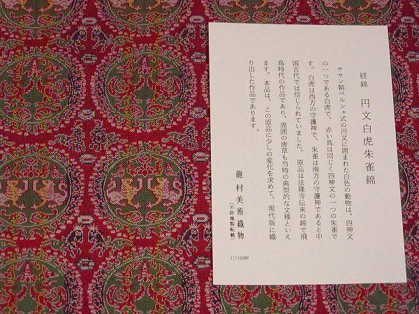 | ■茶道具 出帛紗/出袱紗(だしふくさ) 裂地:「円文白虎朱雀錦-赤」 ( えんもん びゃっこ すざくにしき ) 正絹 名物裂 京都 龍村美術織物 | |