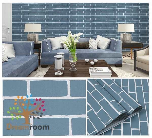 【 20m 】 3D レンガ ウォール ペーパー ビンテージ ブルー 石垣 ストーン 壁紙 糊付き 北欧風 インテリア はがせる シール DIY