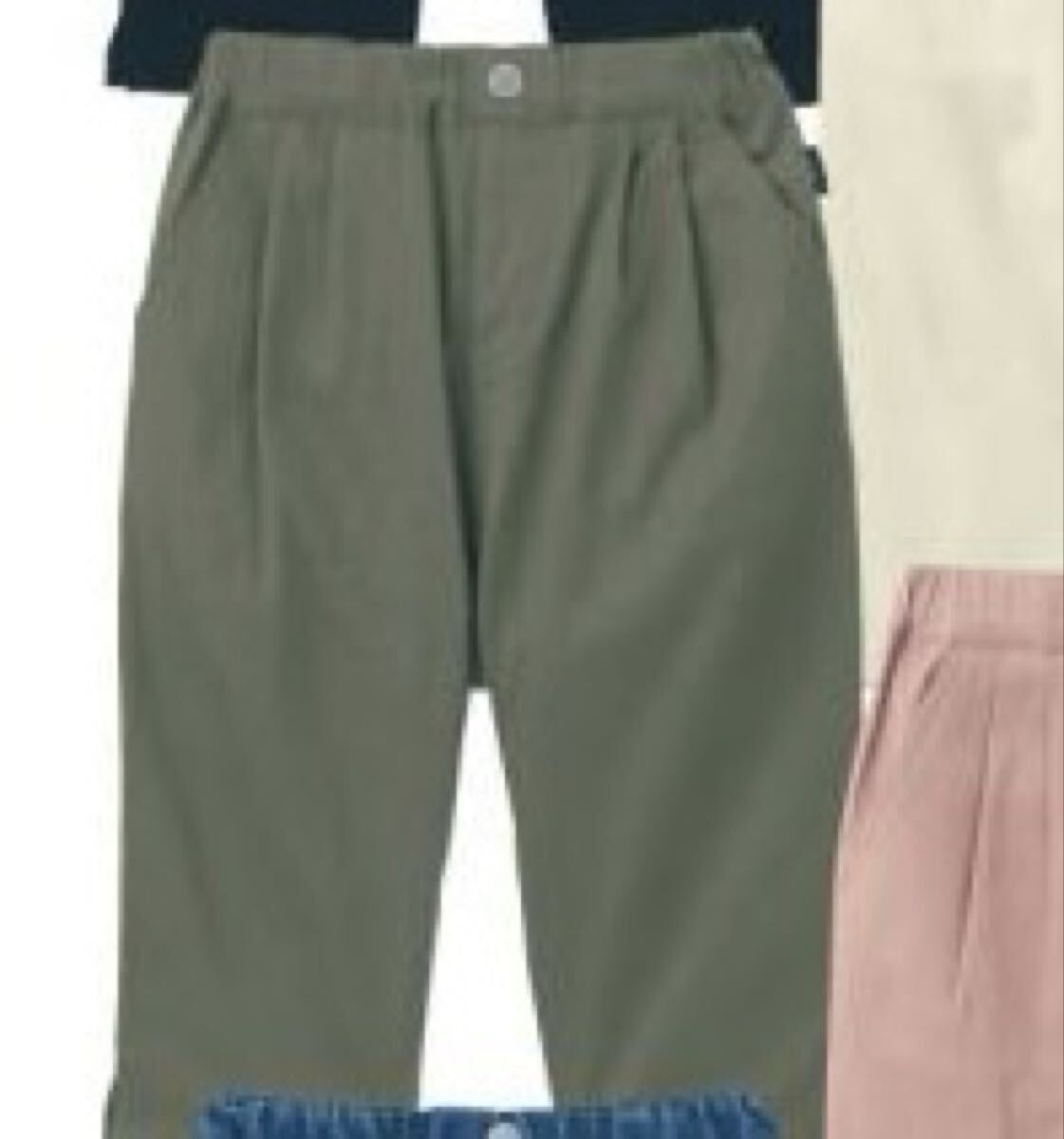 カーキ色のタックパンツです。カジュアルなデザインで、様々なトップスに合わせやすいと思います。