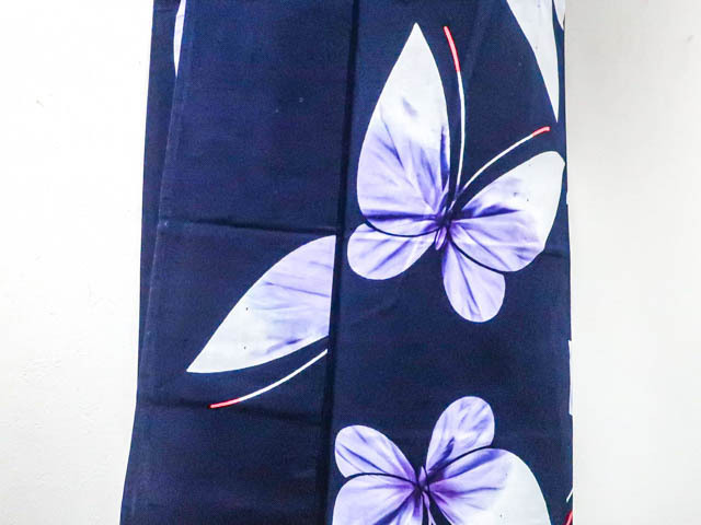 肩当て付きです。リサイクル商品のため、右後ろ身頃にしみ、袖口にスレがございますが着用可能なお品です。 地色は 紺です。 1枚目の画像が近いお色かと思われます。 素材は綿です。 |