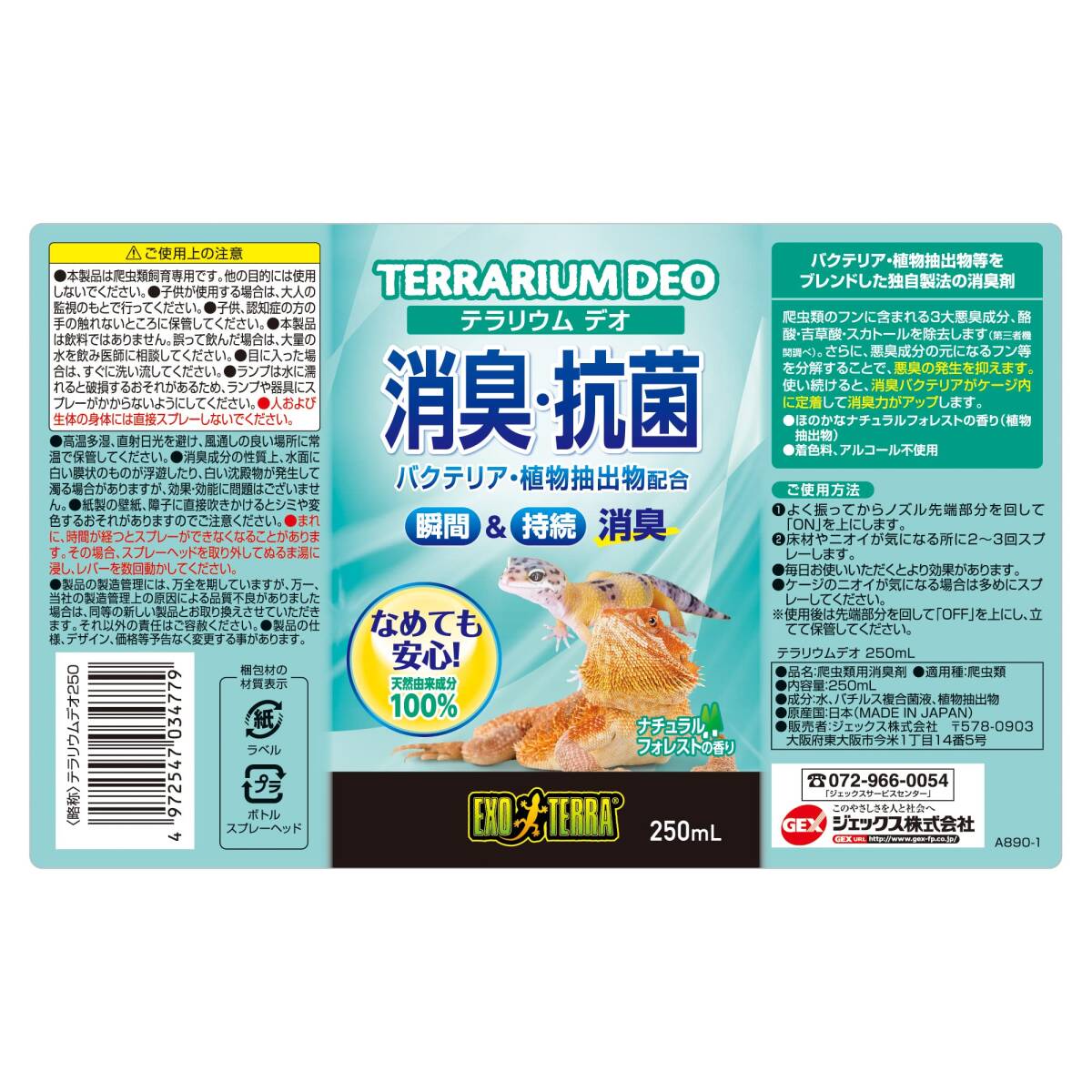 GEX EXOTERRA テラリウムデオ 250mL 天然由来バクテリア 悪臭の元を分解消臭 爬虫類専用 ほのかなフォレストの香り