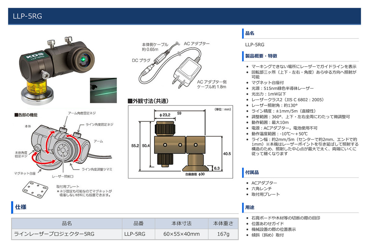 〈KDS〉ラインレーザープロジェクター5RG LLP-5RG