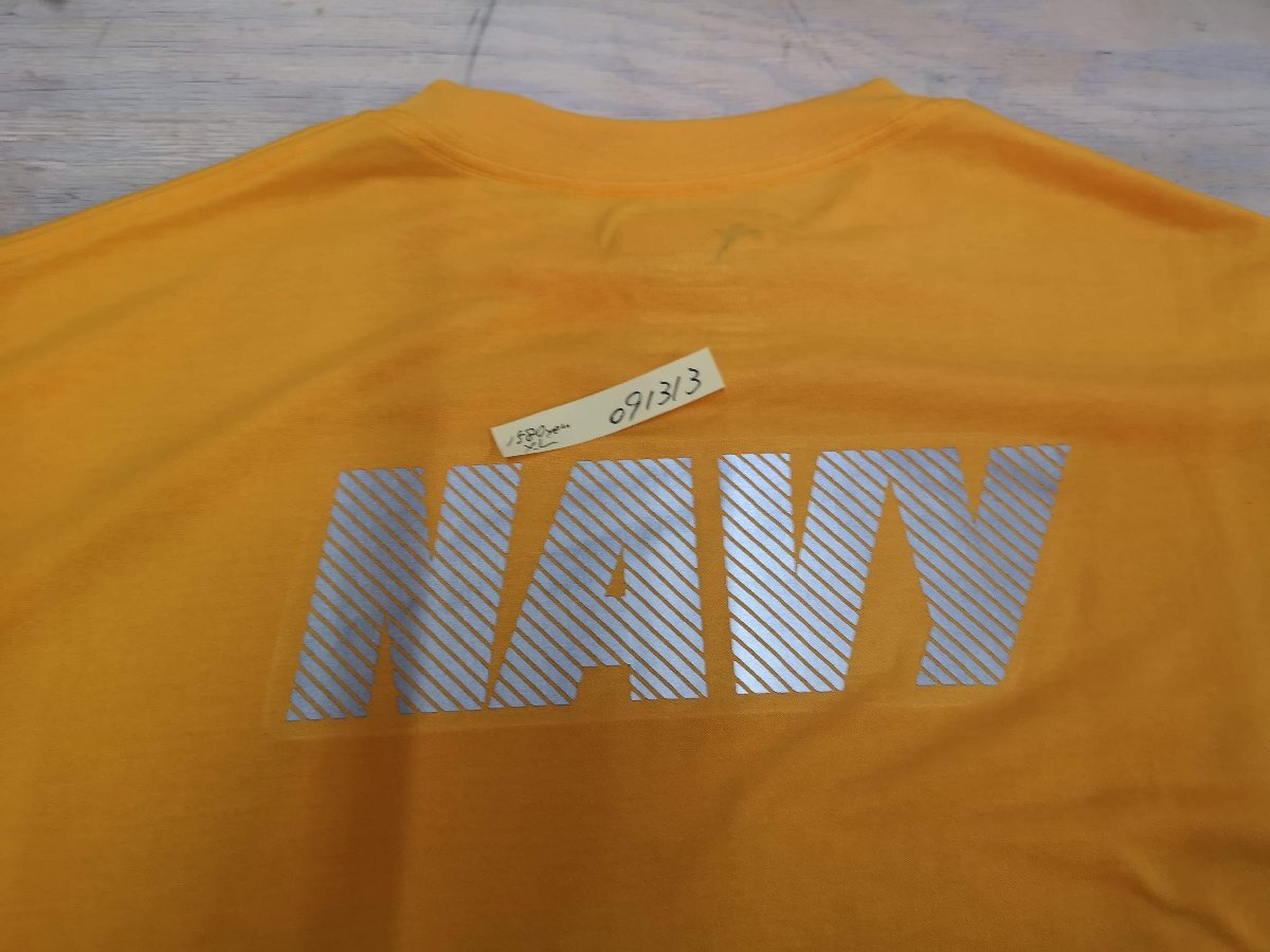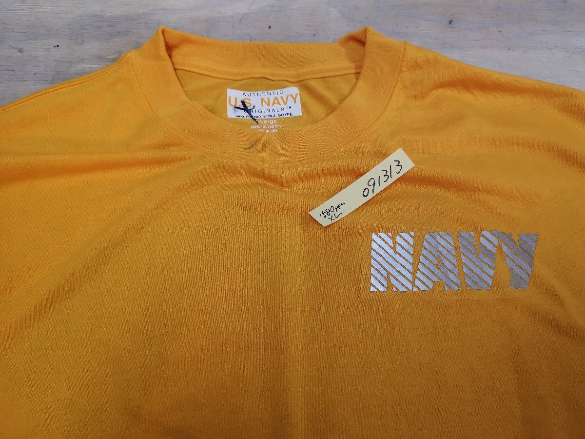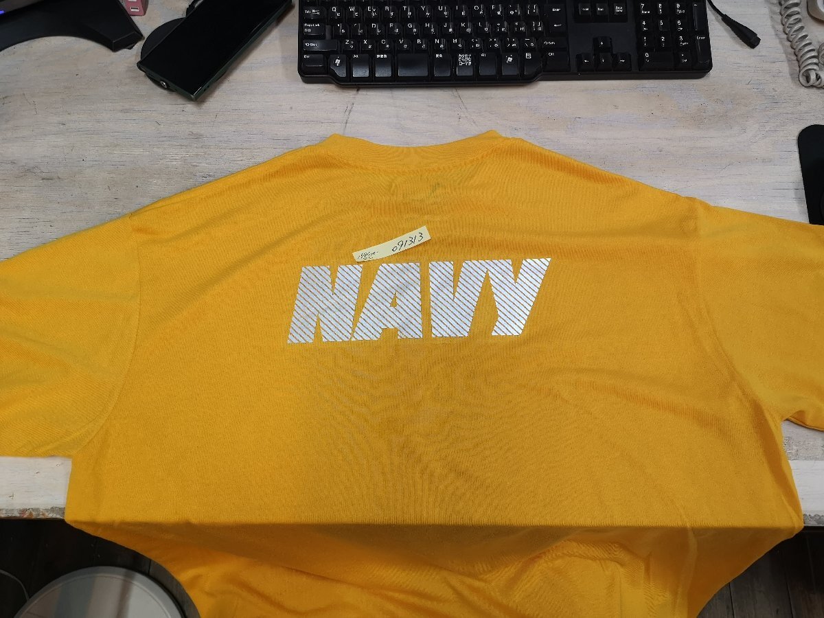 5枚目までの写真は流用です、U.S. NAVYにて採用されているSOFFE社製のトレーニング用Tシャツのセカンドコンディション(傷品 ちょいヨゴレやプリント剥がれ・小さな傷など)です。タグに書き込み 軍採用のトレーニングTシャツのためしっかりとした作りになっており、ポリエステル100%で冬場や梅雨時の洗濯時にも速乾性に優れています。 デザインも発色の良い色合いで、胸と背中にあるリフレクタープリントが特徴的です。 夜のジョギング時などにリフレクタープリントが光で反射し、安全性とデザイン性を兼ね備えたTシャツです。 USサイズのM(身幅55cm/肩幅50cm/着丈68cm/袖丈25cm ) L (身幅60cm/肩幅52cm/着丈68cm/袖丈25cm ) XL(身幅63cm/肩幅56cm/着丈72cm/袖丈27cm ) 素材:ポリエステル ●状態:デッドストック※#2コンディション クロネコネコポス便200円でお送りします、落札価格にプラスしてください。ユーズドです。