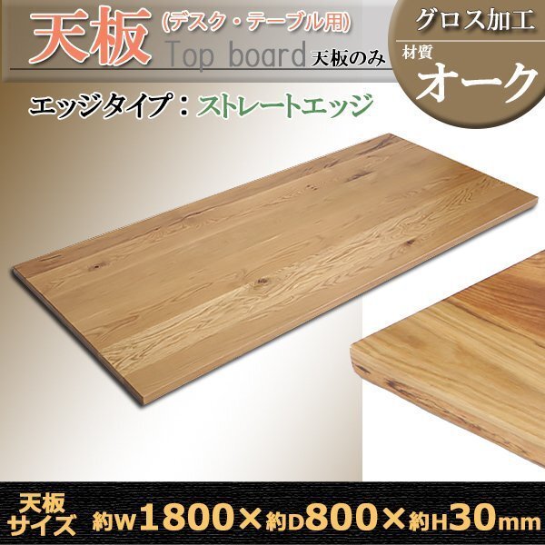 商品名 | 送料無料 天板 デスク テーブル 天板のみ オーク材 W1800×D800×H30mm オーク ストレートエッジ グロス加工 高級 木製 木材 天然木 無垢材 耳付き tenban180oakg |