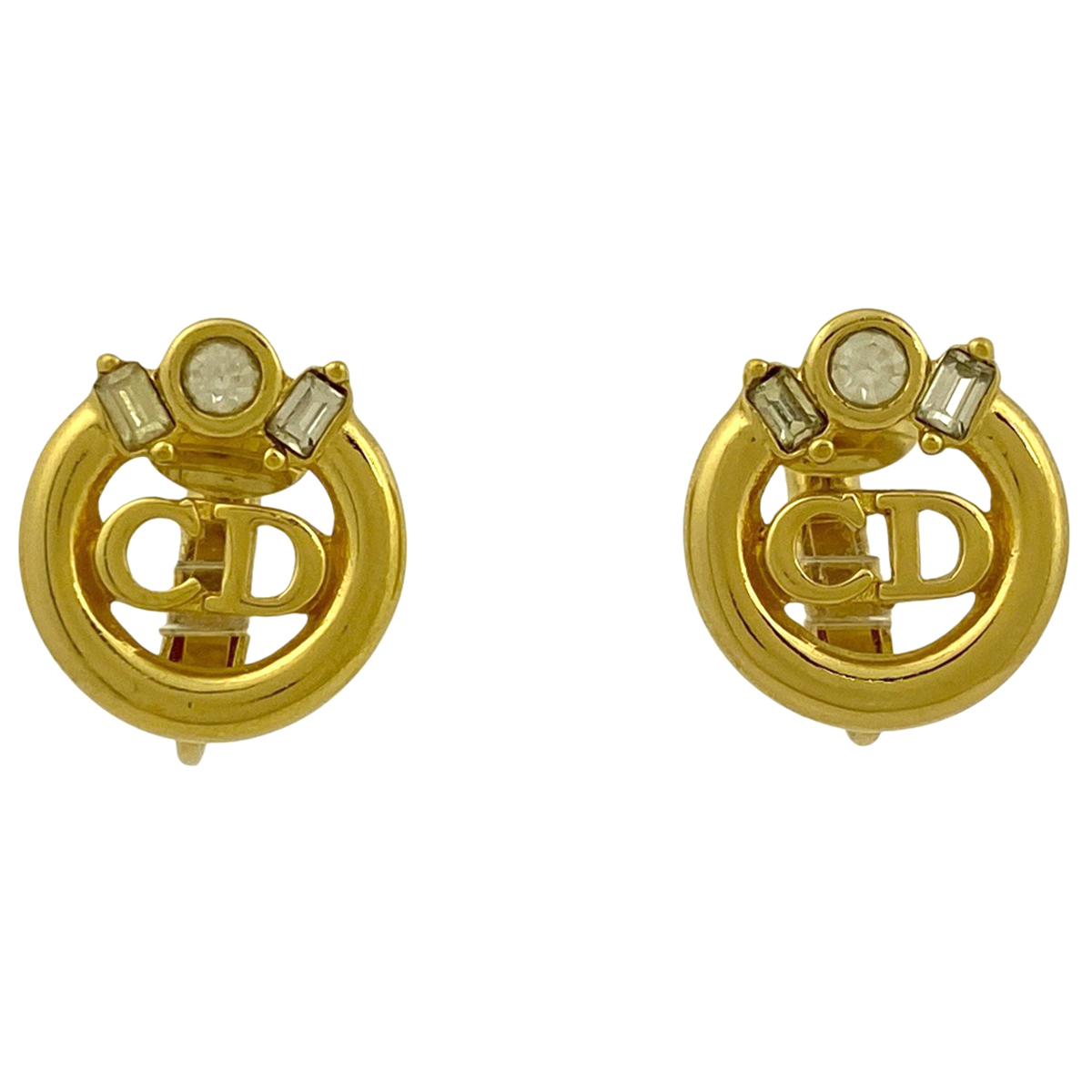| クリスチャンディオール Christian Dior ロゴ ラインストーン イヤリング ラウンド CD イヤリング GP ゴールド レディース 【中古】 |