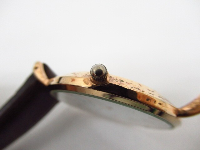 | ※こちら、中古商品となります。 【状態】 ケースに擦れや傷、汚れがございます。 本体には使用感、擦れ、汚れ、サビ、リューズに塗装剥がれ、ベルトに黒ずみ、風防に傷等がございます。替えベルトには汚れ、金具に擦れやくすみがございます。 ※革ベルト止め具が欠品しております。 写真にて状態のご確認をお願い致します。 動作・稼働品となります。 【サイズ】 ケース直径:約3.6cm(リューズ含まず | ||||