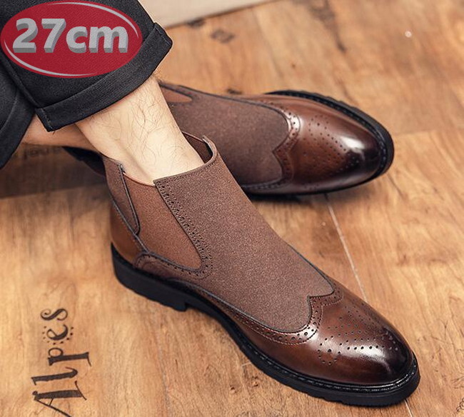 サイドゴア メンズ ビジネス レザー シューズ ブラウン 27.0㎝ 革靴 靴 カジュアル 屈曲性 通勤 軽量 インポート品【n152】