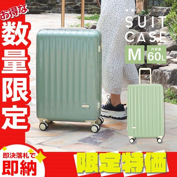 【限定セール】スーツケース 大容量60L Mサイズ 4~6泊 TSAロック 受託手荷物 キャリーケース キャリーバッグ おしゃれ 旅行用品 グリーン