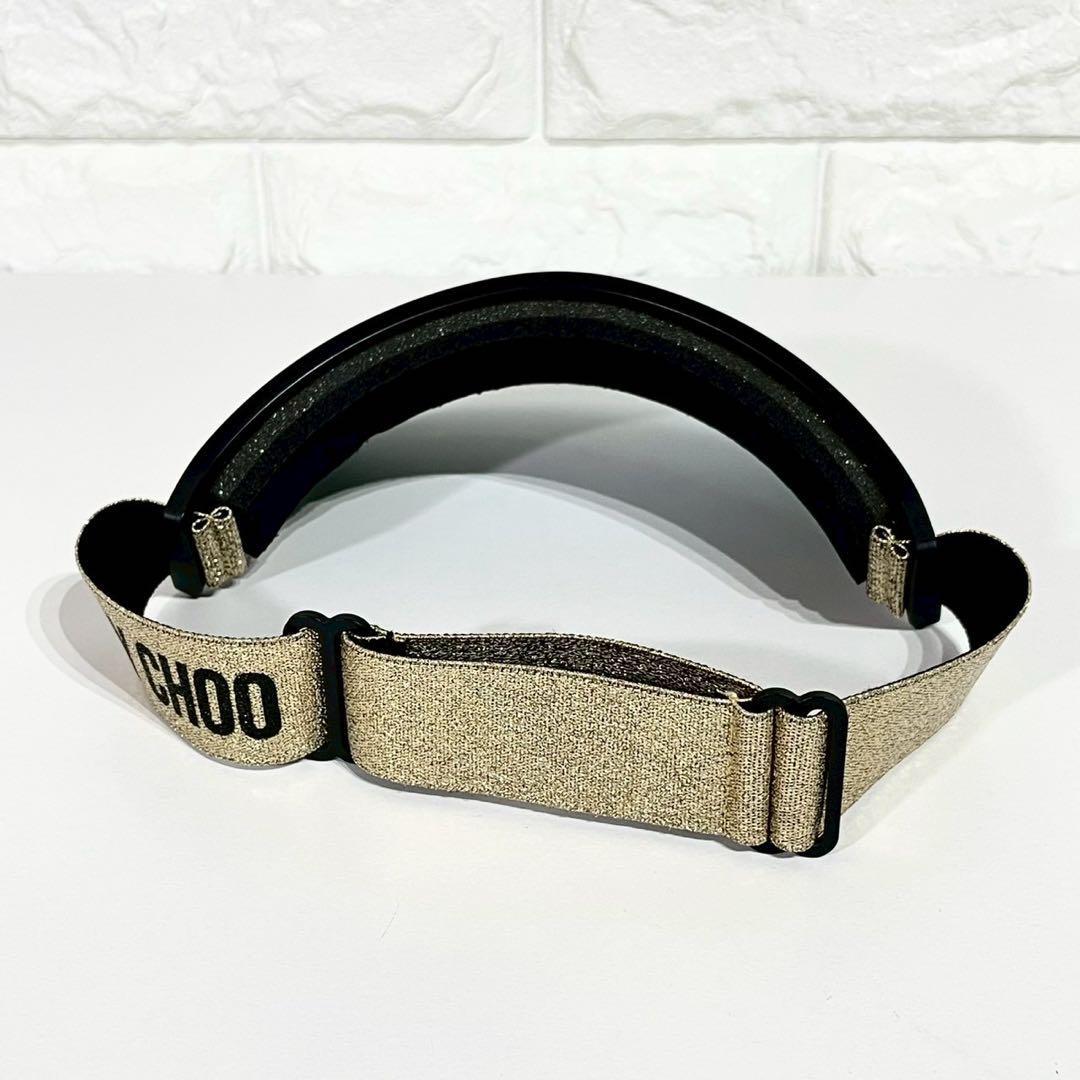 アジャスターでサイズ調整可能なヘッドバンドはゴージャスなゴールドグリッター素材で、「JIMMY CHOO」のロゴと「JC」のモノグラムがあしらわれた高級感溢れるデザイン。