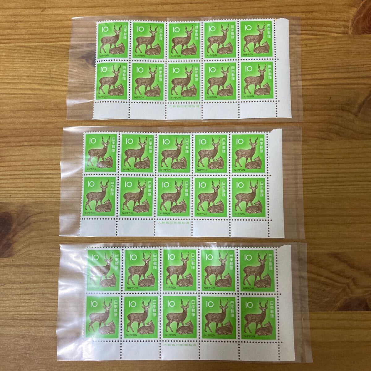 【未使用 銘版付き】切手 シカ 鹿 10円 10枚ブロック 3シート