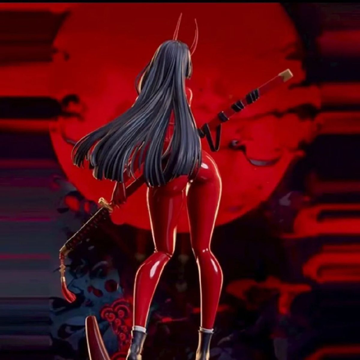 真っ赤なタイトボディスーツに包まれた見事なプロポーションが目を惹く逸品。