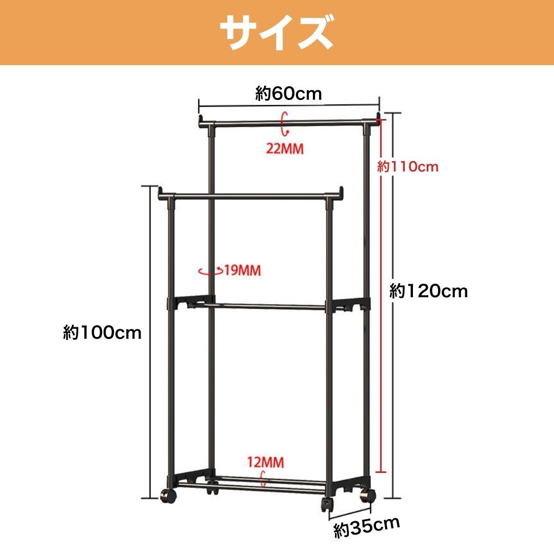 ダブルハンガーラック 衣装ラック 洋服掛け 2列 組み立て 大容量 ホワイト 白 収納力抜群 室内干し 物干し 新居 引越し スペース |