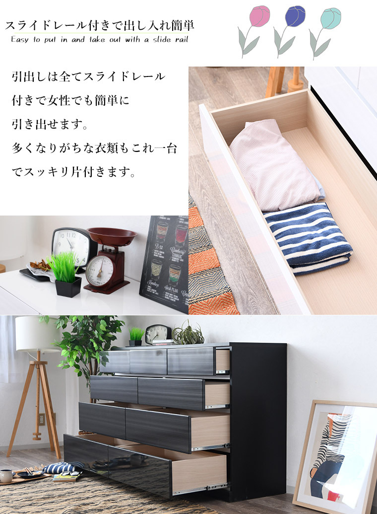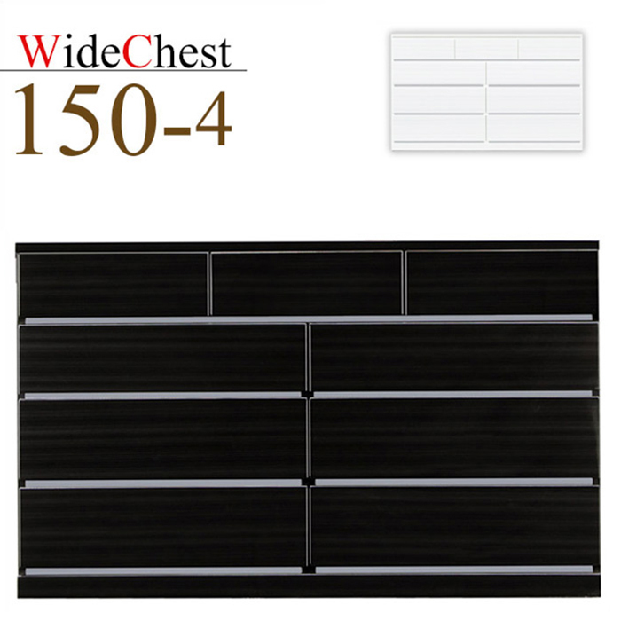 ワイドチェスト ローチェスト 幅150cm 4段 完成品 収納タンス モダン リビング 木製 国産 大容量 ゼブラホワイト