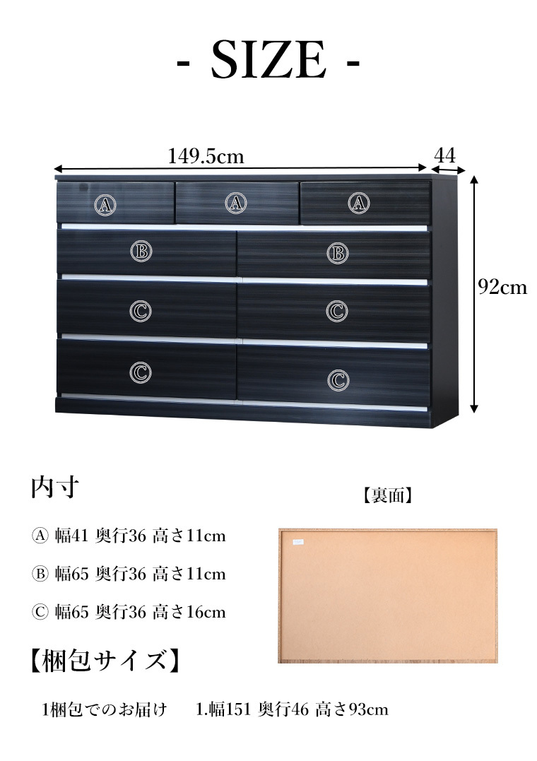商品サイズ本体: 幅 149.2×奥行 44×高さ 92 (cm)