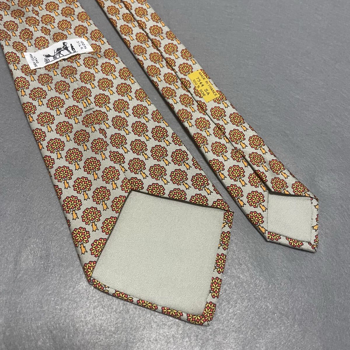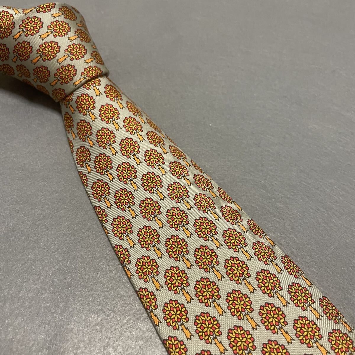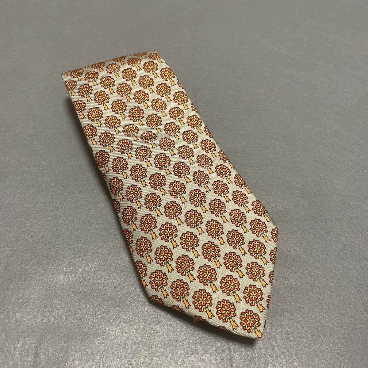 1円スタート! 未使用級 HERMES エルメス シルク100 ネクタイ 良柄 総柄 フランス製 ビジネス レギュラータイ メンズ