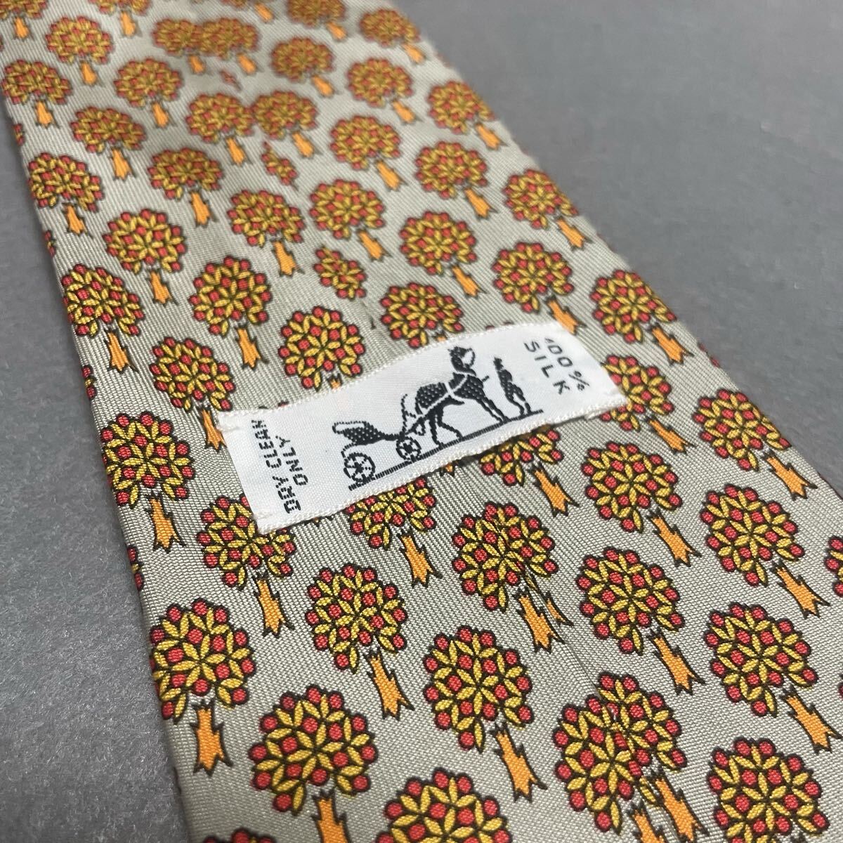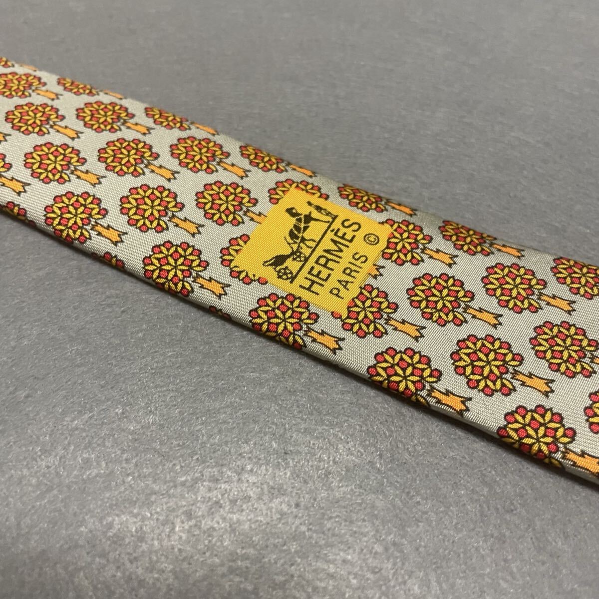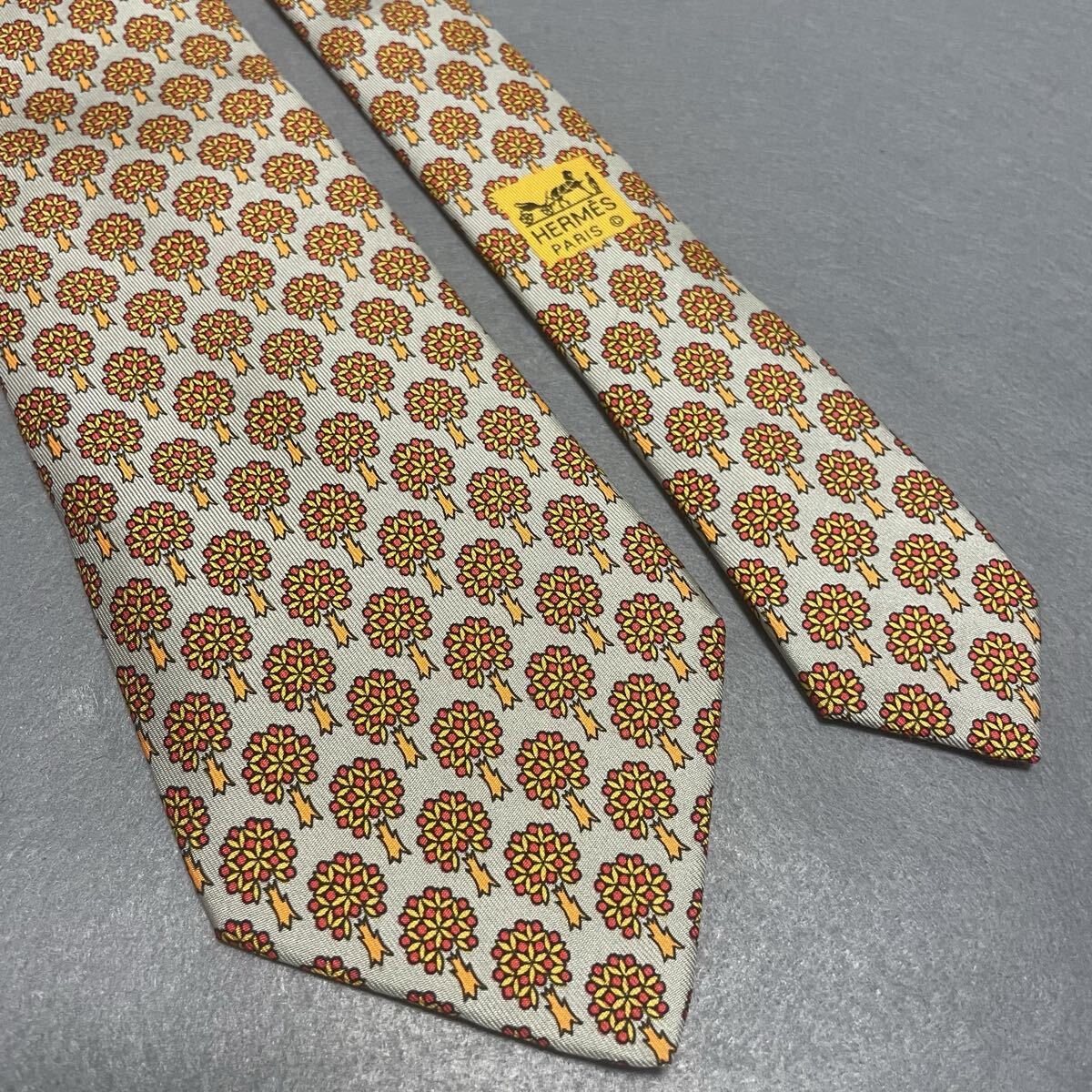 1円スタート! 未使用級 HERMES エルメス シルク100 ネクタイ 良柄 総柄 フランス製 ビジネス レギュラータイ メンズ