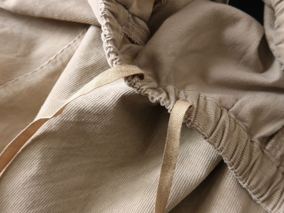 両サイドポケット付き。ウエスト内側にドロスト紐付き。