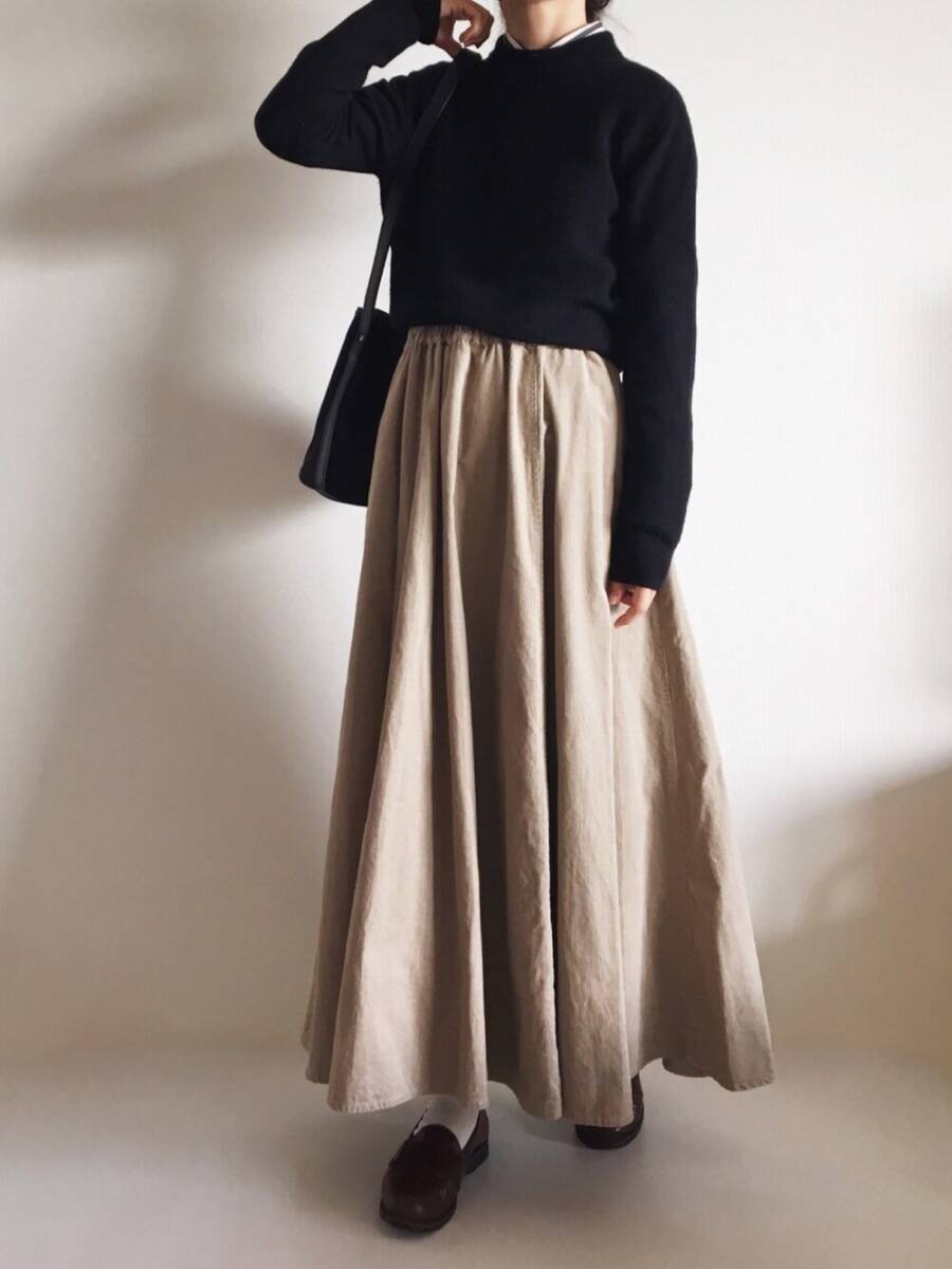 女性らしいフレアシルエットで、温かみがあり動くたびに表情が出て、スタイリングに深みをプラス。
