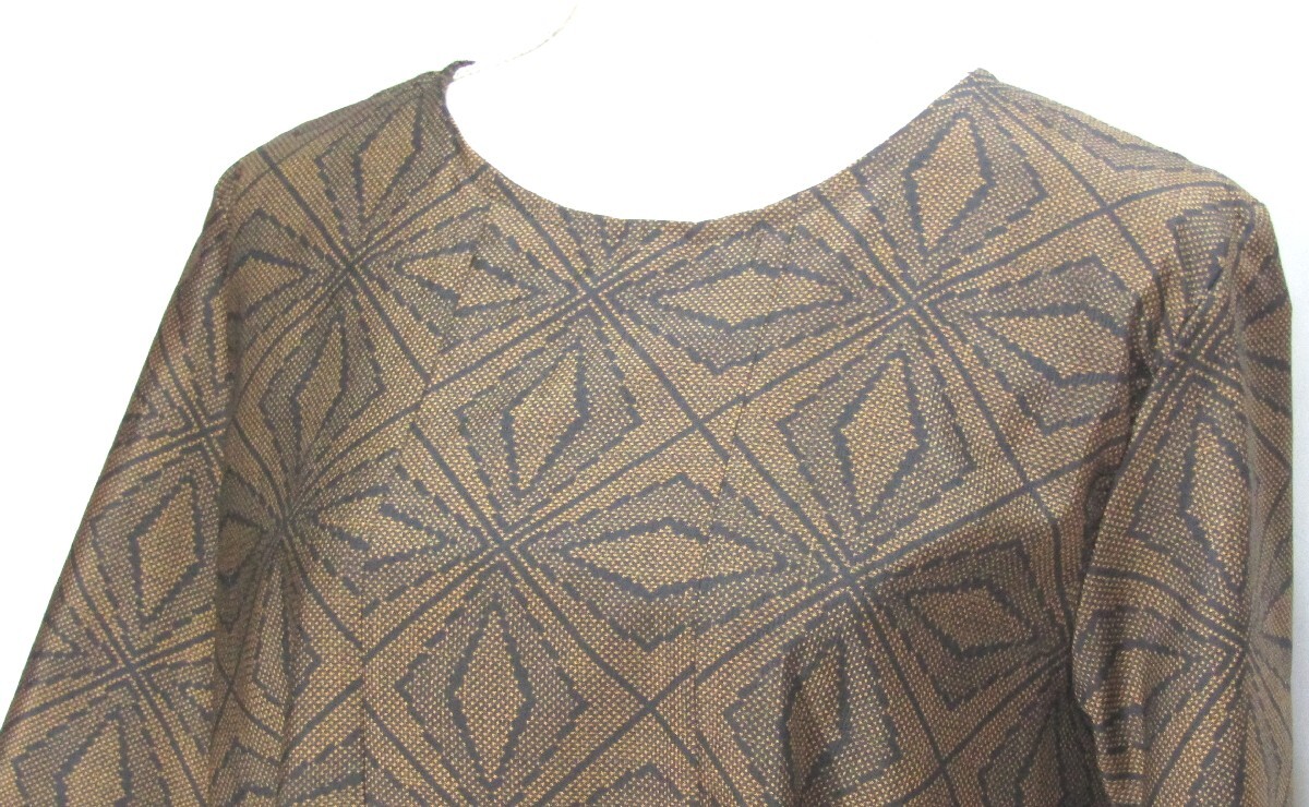 (1033)着物リメイク ハンドメイド「ワンピース」大島 (麻の葉)