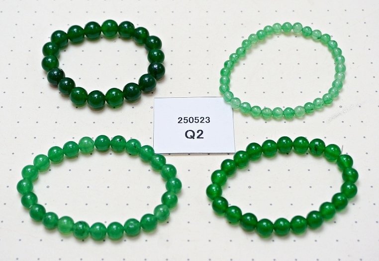 ヒスイ メノウ等 緑石系 天然石ブレスレット まとめて4点セット ヒスイ メノウ等の緑石系 天然石のブレスレット 4点セットです。 とても丁寧に研磨されており、艶、色味ともに非常に美しいものです。 写真がお譲りする商品の全てになります。 材質: ヒスイ メノウ等の緑石系の天然石 サイズ: ブレスレットが置かれている下地の模様の点の間隔が1cmですので、参考にしてください。 個数: 4点 当店の他の出品商品との同梱料は下記のとおり落札1点につき200円です。 |