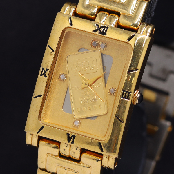 1円 クレディスイス ゴールドインゴット 999.9 QZ ゴールド文字盤 メンズ腕時計 1927000 10NGB MST