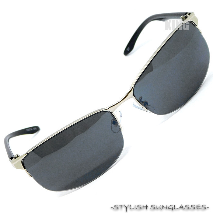 送料無料 オラオラ系 チョイワル系 ハーフリム型 サングラス メンズ UVカット ブロー 伊達メガネ ドライブ 運転 強面 スモークレンズ新品☆