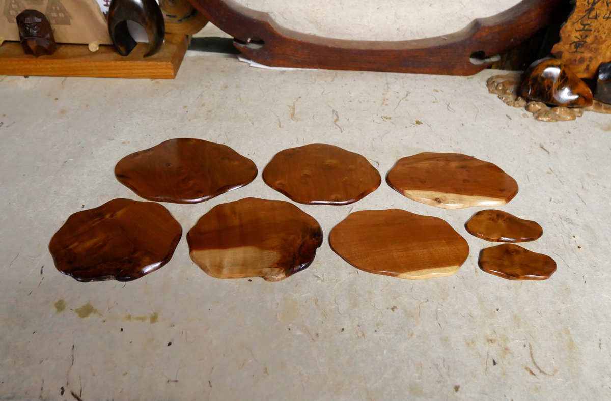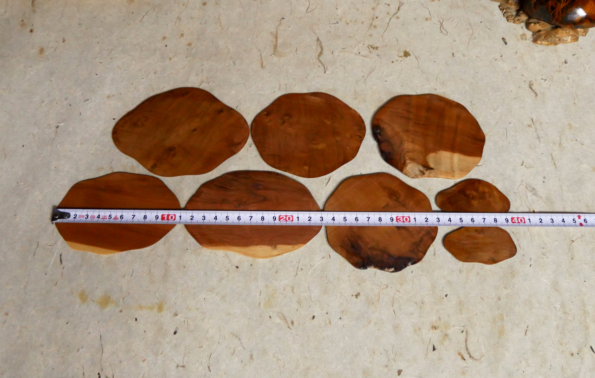 【飛騨の杢工房 謹製】ナツメ自然木 ミニ地板 大小8枚です。 No.9049