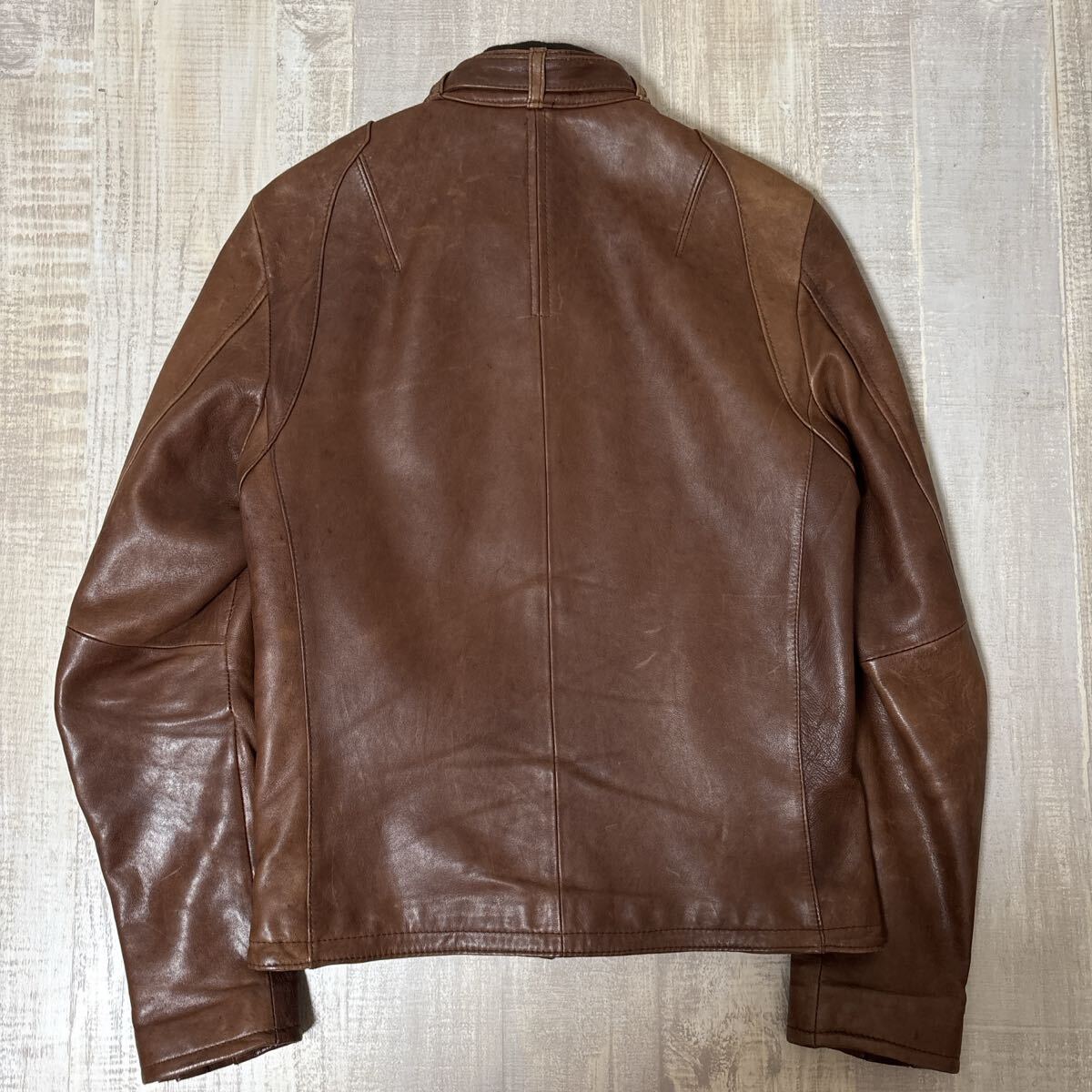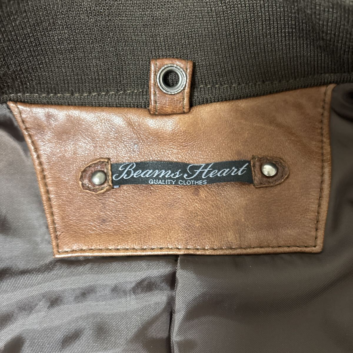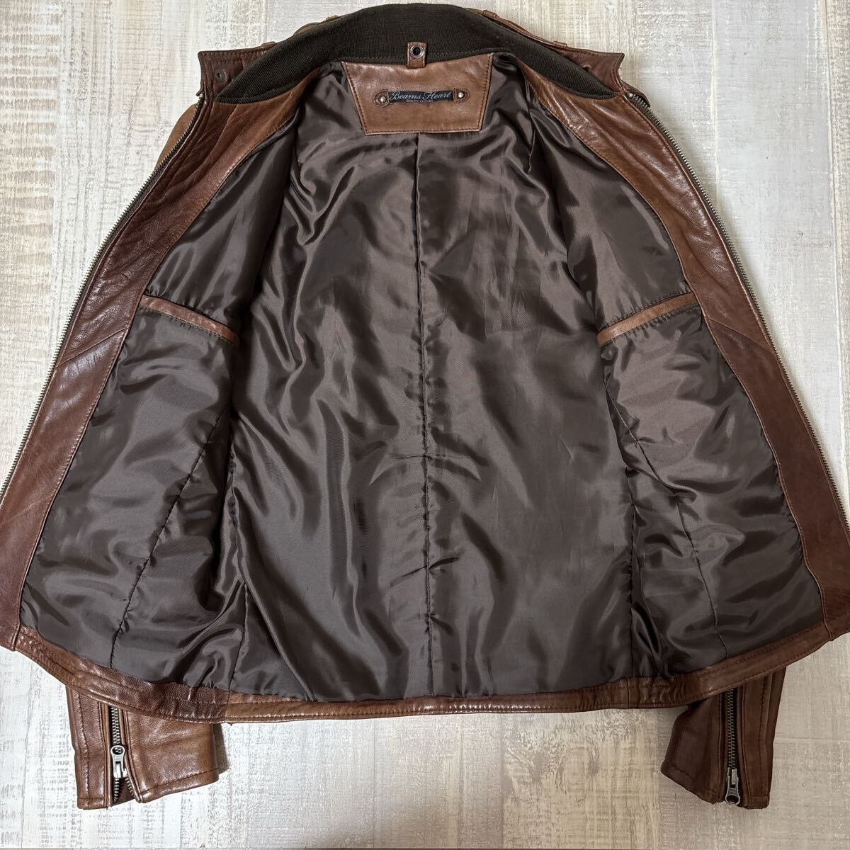 【羊革 中綿入り】BEAMS HEART ラムスキン ダブルジッパー レザーシングル ライダース ジャケット ビームス ハート サイズS ブラウン メンズ ヴィンテージ