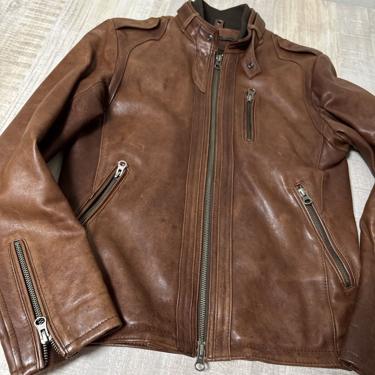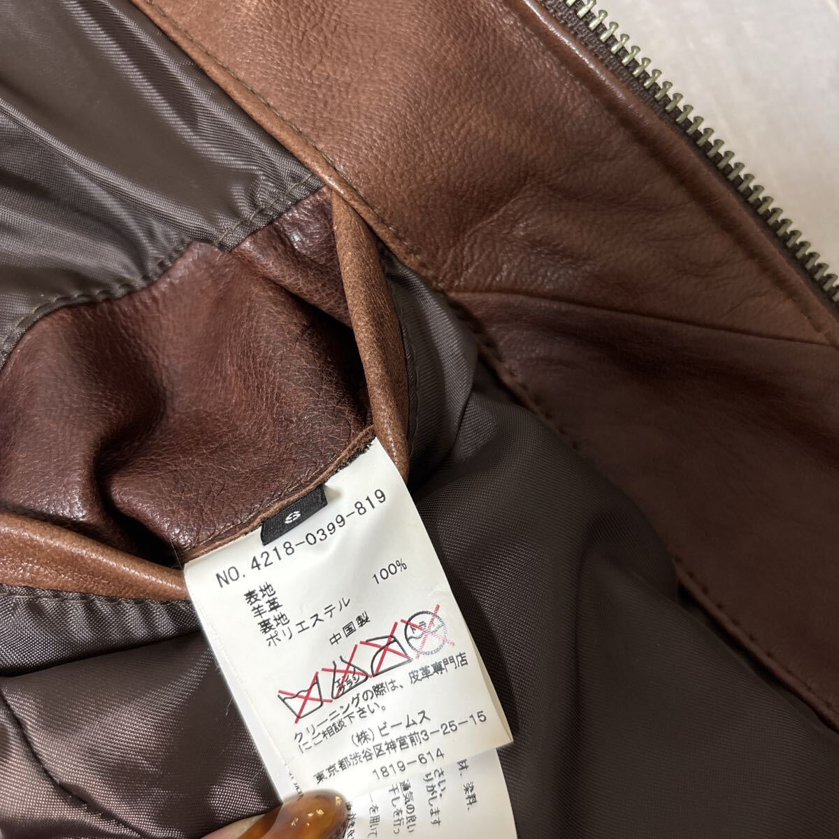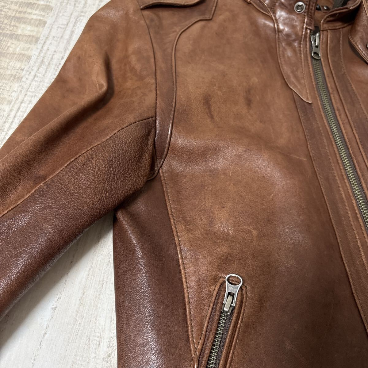 【羊革 中綿入り】BEAMS HEART ラムスキン ダブルジッパー レザーシングル ライダース ジャケット ビームス ハート S ブラウンヴィンテージ