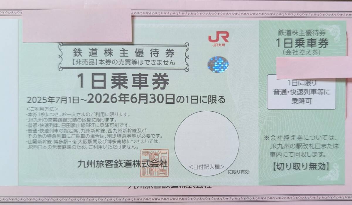 JR九州鉄道株主優待券 九州旅客鉄道 鉄道株主優待券 1日乗車券