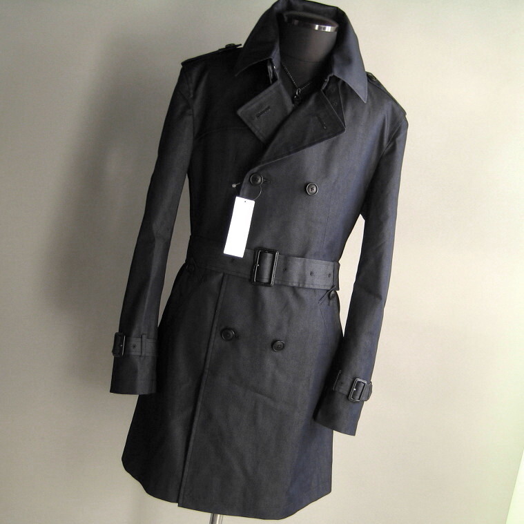 3.5万 新品 ハイストリート L T/CシャンブレーWトレンチコート ネイビー 160