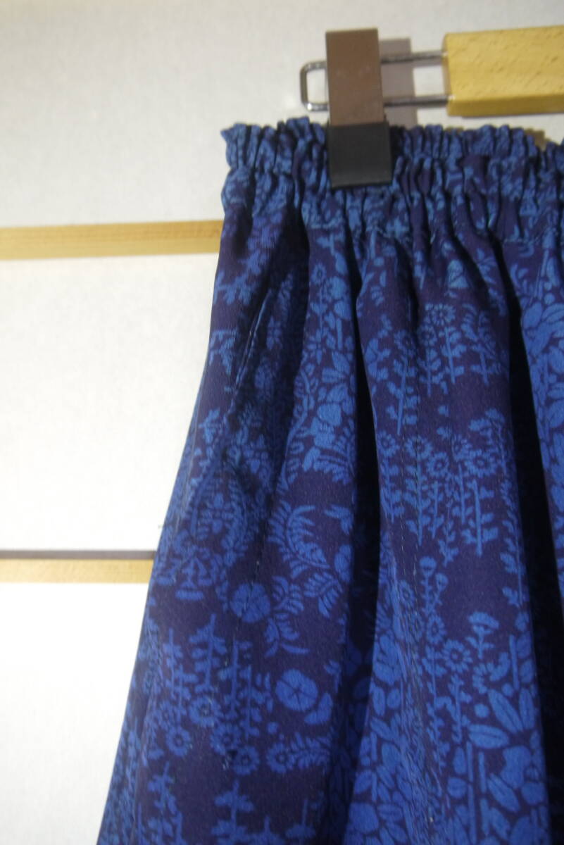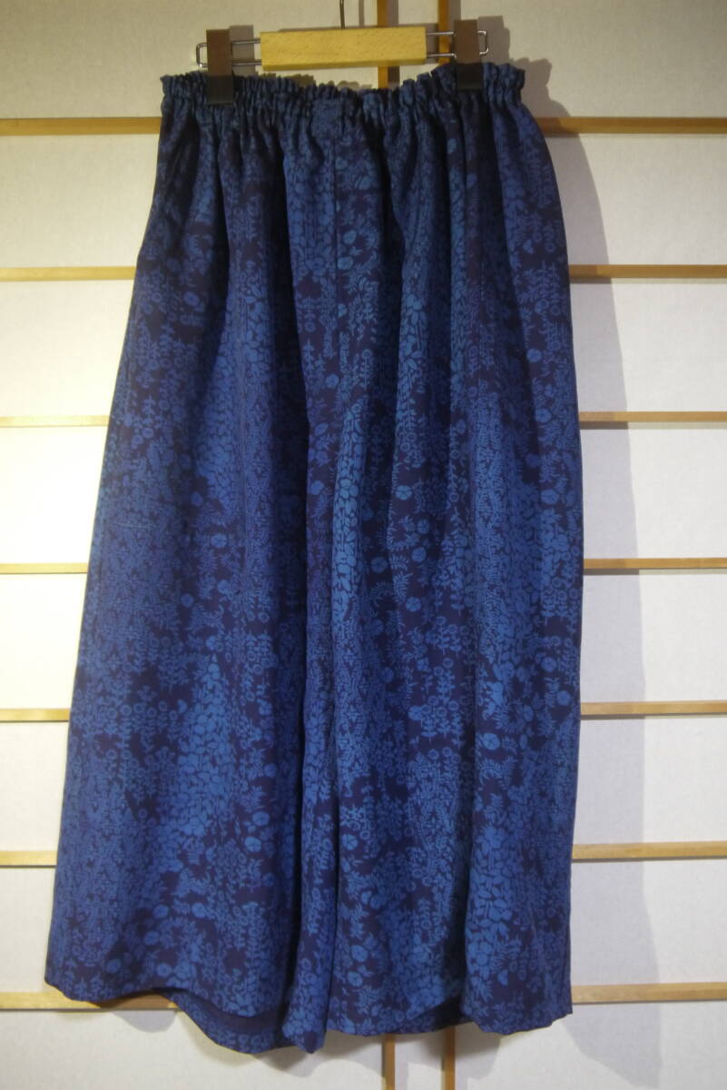 ★D&C着物リメイク・ワイドパンツ・絹・藍染小紋・花、葉寄せ柄 ★