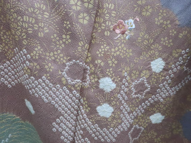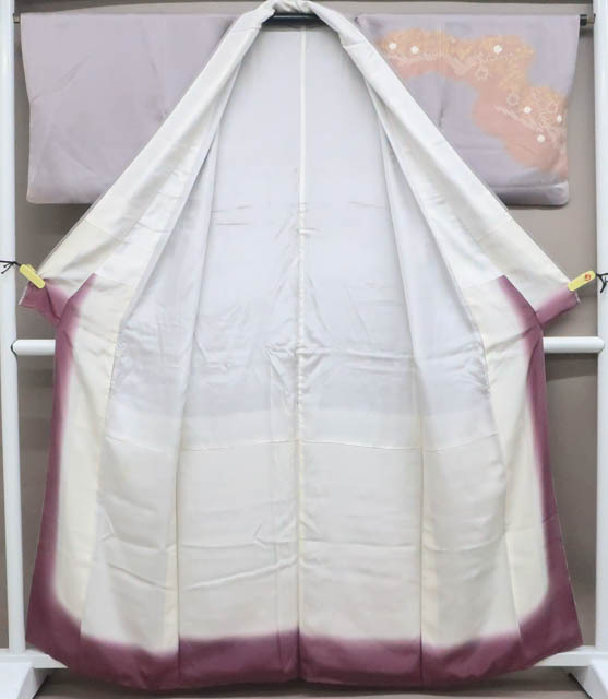 リサイクル商品のため、衿汚れと表所々しみがございます。 絞りアクがございます。 八掛け・胴裏に擦れと胴裏縫い目の糸ゆるみがございますが着用可能なお品です。 地色は薄灰紫です。 1枚目の画像が近いお色かと思われます。 素材は正絹です。 |