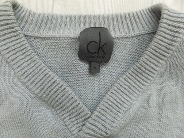 Calvin Klein カルバンクライン レディース Vネック 麻綿 サマーニットソー M グレー です。