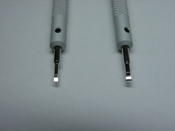 ■汎用のドライバーに比較して刃厚があり、ネジ溝を傷つけることなく、ブレスの駒調整が可能です。また、ドライバーの柄を太くして、堅いネジでも楽に外せるよう工夫しています。数量限定品! |