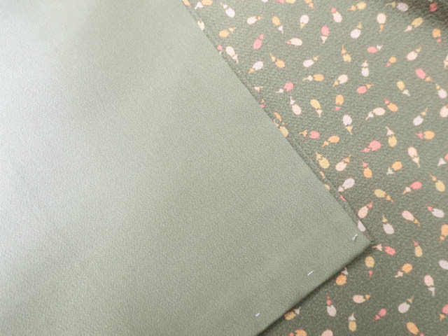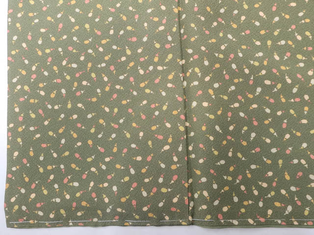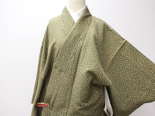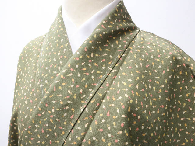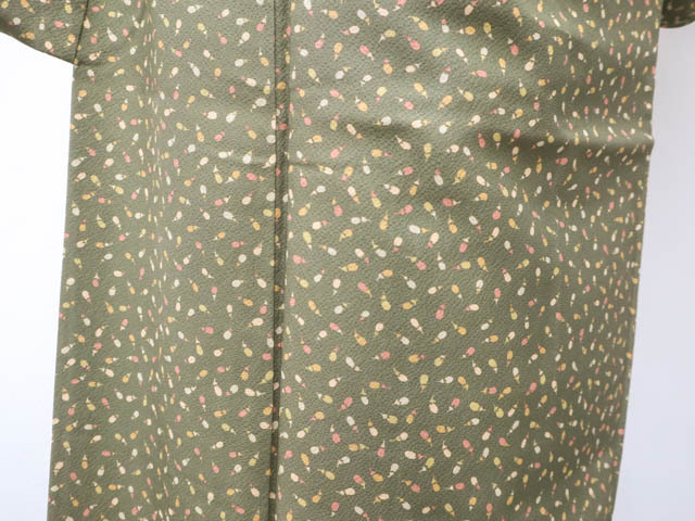 リサイクル商品のため、胴裏に小さな汚れがございますが着用可能なお品です。 地色はくすみ緑です。 1枚目の画像が近いお色かと思われます。 素材は正絹です。 |