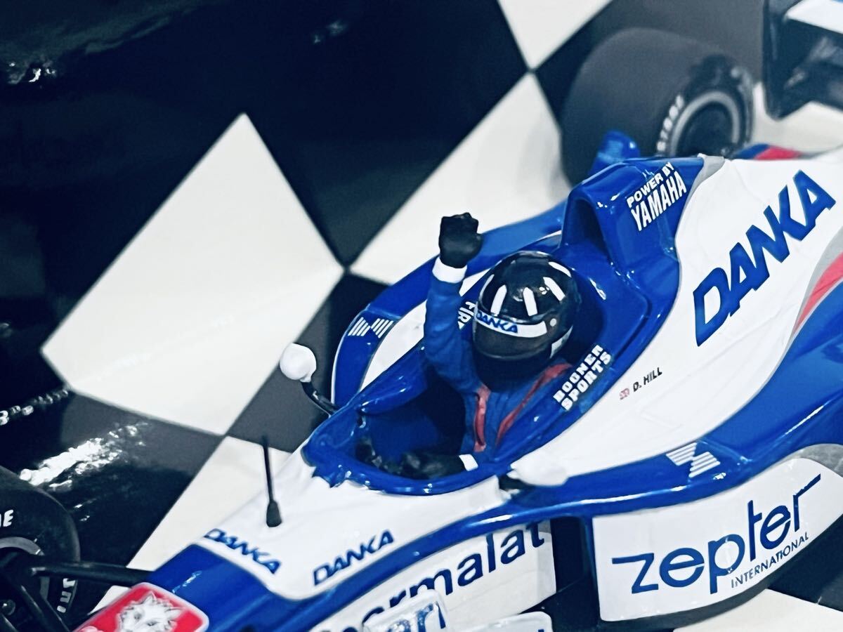 ヒルが1997年初入賞した母国イギリスGP仕様で、パッケージ写真のガッツポーズを再現しています。