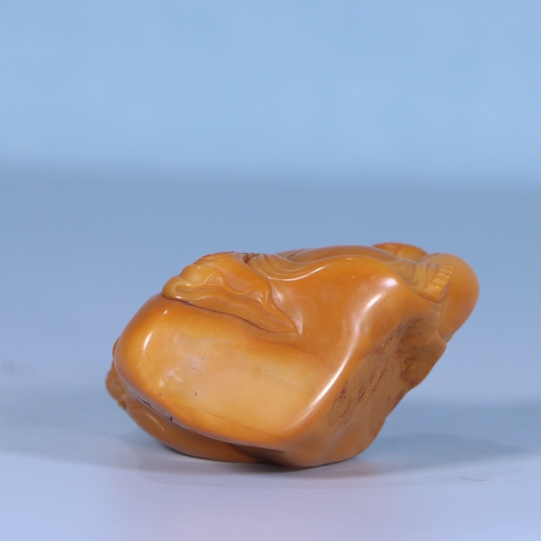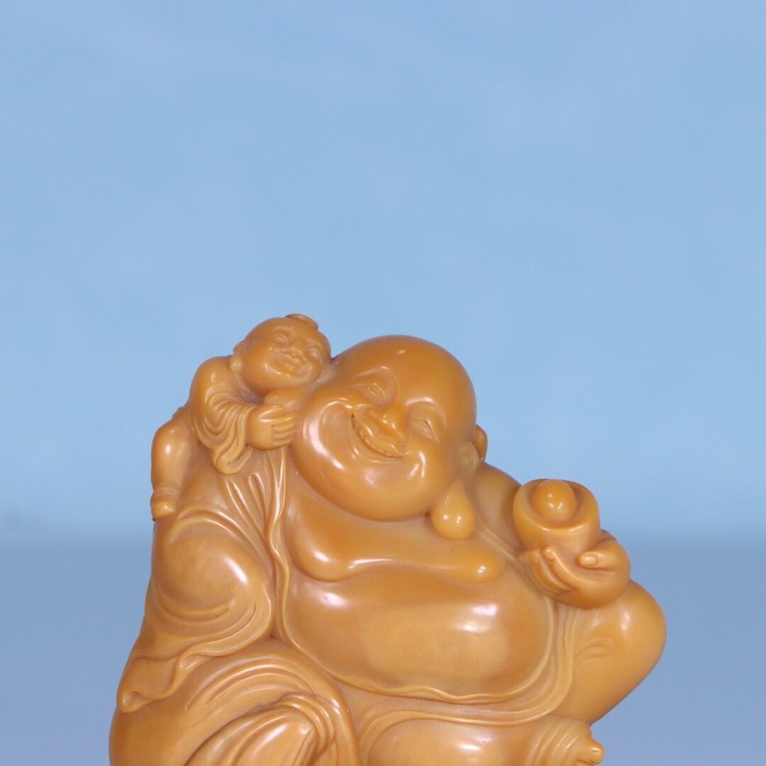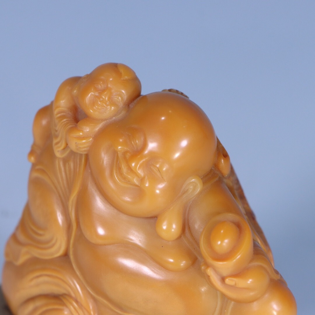 「清 林元水作 老寿山石 田黄石彫り 童子弥勒笑仏」極細工 擺件 古賞物 中国古美術 旧蔵出