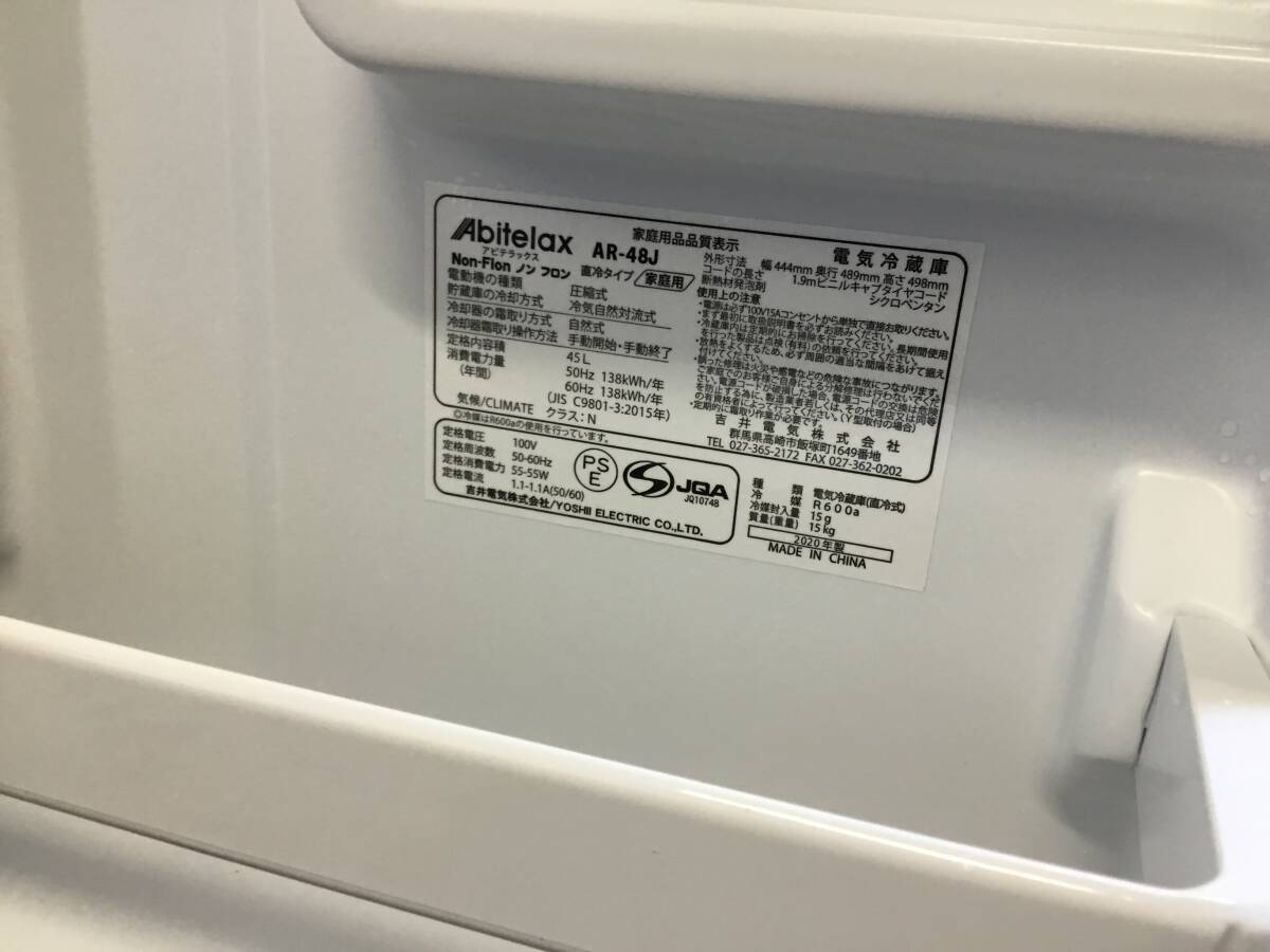 △ y 岐阜発/ Abitelax/ 1ドア/ 冷蔵庫/ AR-48J/ 2020年製/ 動作確認/ 小型冷蔵庫/ 現状品/ R7.10/6 △ |