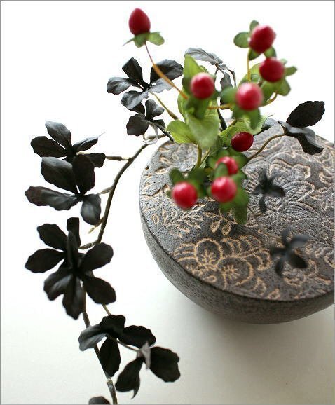 | 個性的な形のベースです 半円のボウルに蓋が付いた形で 花を一厘さしても オブジェのように決まります [商品名]和陶器ベース コロン(soh1951) 全体サイズ(cm):幅13×奥行13×高さ7 花器の口径:約直径2.5 花器の深さ:約6 重量:約480g 材質:陶器 原産国:日本(信楽) 注)写真掲載の花は撮影用のため付いていません 注)仕上がりによって、釉薬や温度の変化による色あいや模様が一つ一つ僅かに変わります。予めご了承ください。 |