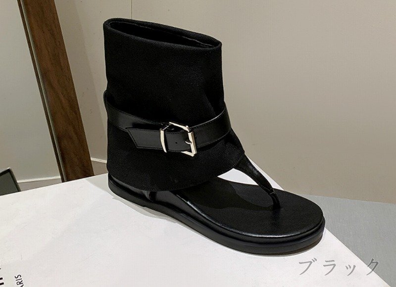 ブーツ バイカラー 切り替え シンプル 【38】23.5~24cm ブラック
