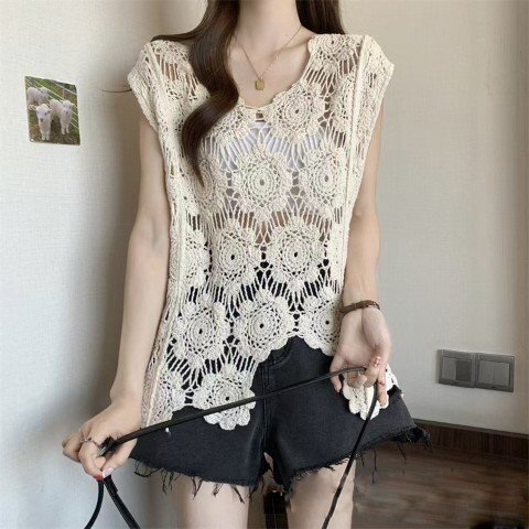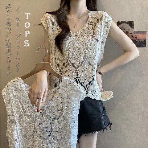 ・程よい透かし編みとノースリーブデザインで、春夏にぴったりの軽やかな着心地です。