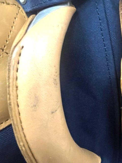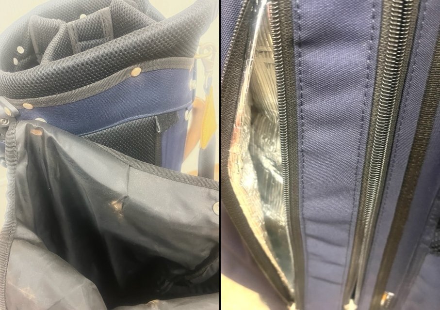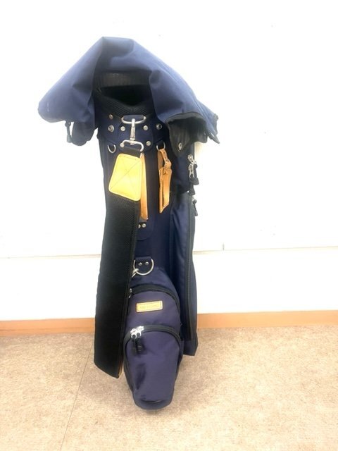 商品説明 ファスナーによってフードを被せたままクラブの出し入れ可能です。 ハンドルカバー、ネームプレートやショルダーストラップにデザインのアクセントになる撥水加工の本革パーツ使用。 詳細 ●サイズ:高さ84cm 横21cm 幅34cm ●付属品:フードカバー ●ランク:Dランク ●コンディション:フードのスナップボタンが硬く、錆跡や汚れあり。 バックの金属部分に錆や汚れ、本革部分に汚れあり。 本体にもキズや汚れなど使用感があります。 |